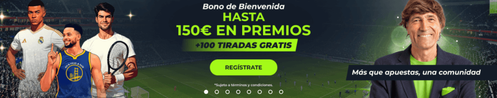 Si te registras ahora en YoSports y prefieres un bono de bienvenida, te recordamos que este juego dispone de una promoción muy interesante con la que podrás conseguir hasta 150€ + 100 tiradas gratis con tu primer depósito. Una gran opción para empezar a jugar.
